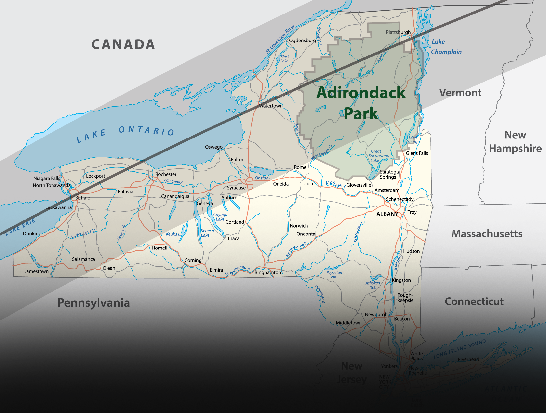 During the eclipse, more than half of the Adirondack Park will be in the path of totality, when the entire face of the sun is obscured by the moon.